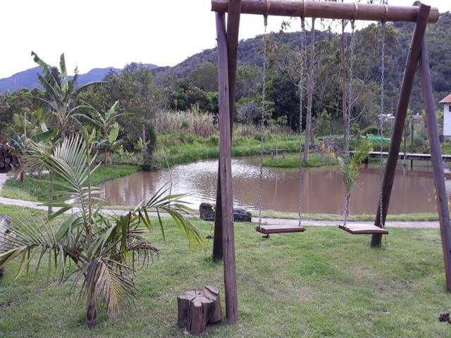 Além disso, o terreno conta com um lago e parque para crianças, proporcionando momentos de lazer e diversão em família. A presença de árvores frutíferas e palmeiras na área verde traz um toque de natureza e beleza ao ambiente.