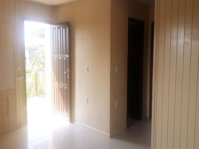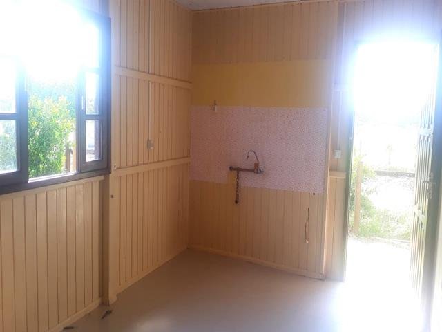 O imóvel em questão é uma casa de madeira com dois dormitórios, um banheiro social, uma sala e cozinha conjugada, além de uma área de serviço.