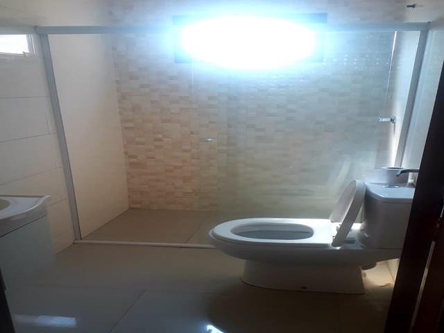 A lavanderia está localizada nos fundos e é toda revestida em porcelanato. Há também uma fundação na parte da frente da casa.