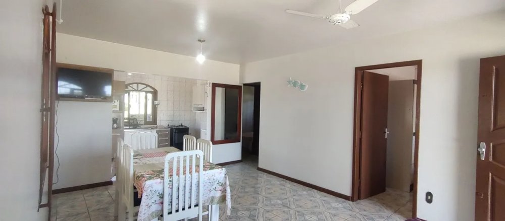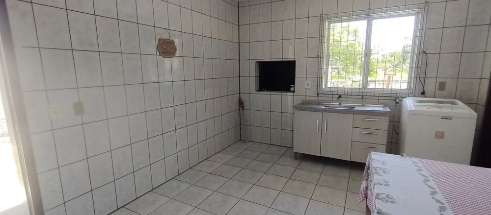 Terreno com uma área de 293 m², e área construída de 87 m², a casa em si possui três dormitórios, sendo uma suíte, dois banheiros, sala e cozinha. Além disso, conta com uma lavanderia e churrasqueira, com uma dispensa e uma vaga de garagem coberta.