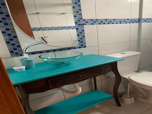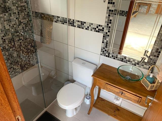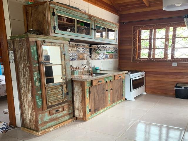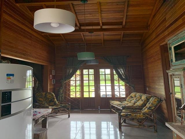 A casa é feita de angelim duplado e possui 2 quartos, sendo 2 banheiros sociais, cozinha, lavanderia com máquina de lavar e dispensa.