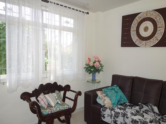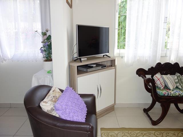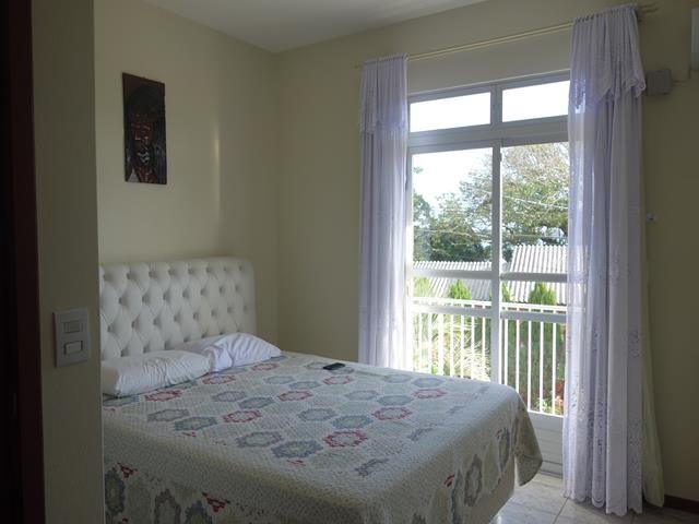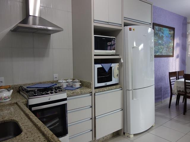 A casa está completamente mobiliada e possui quatro dormitórios, três banheiros, duas vagas de garagem, duas salas, duas cozinhas, duas despensas e área de churrasqueira.
