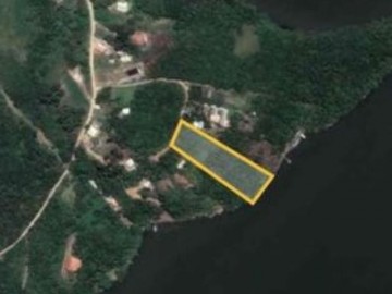 O terreno na beira da lagoa possui uma área de 5.300 m² e tem uma frente de 45 metros para a lagoa. Ele está localizado na ponta de Itaguaçu, no Tamborete, em Imaruí.