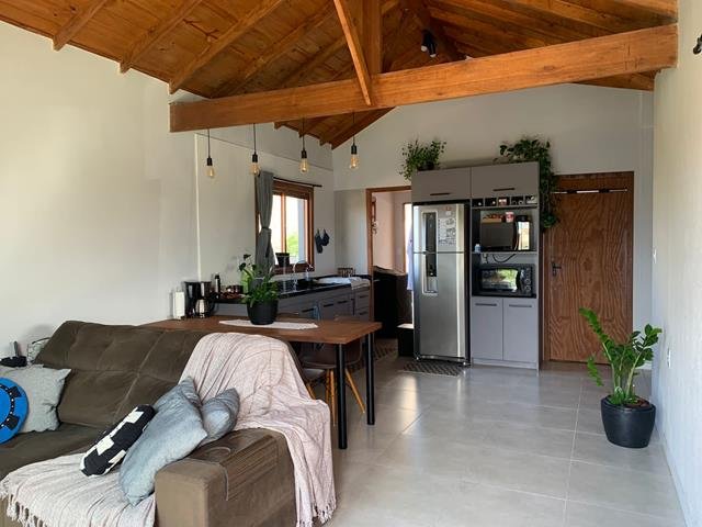 A casa com uma área de 72 m², possui dois dormitórios, sendo uma suíte, dois banheiros, sala e a cozinha são conjugadas, proporcionando um ambiente amplo e integrado, perfeito para momentos de convivência. O banheiro social atende às necessidades diárias dos moradores. ideal para uma família ou casal que goste de receber visitas.