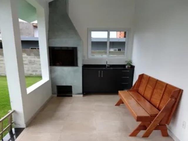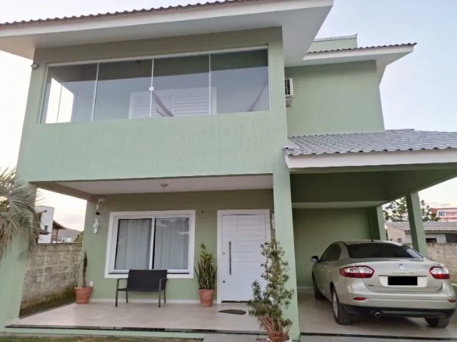 Casa de dois pisos, sala e cozinha em conceito aberto, cozinha com móveis planejados e despensa, lavabo, banheiro social, todos os banheiros com armários sob medida, dois dormitórios grandes de mesmo tamanho, uma suíte grande com sacada (vista para a lagoa) e com móveis planejados, ar condicionado na suíte e em um dos dormitórios, área churrasqueira, área de serviço, depósito, porcelanato em toda a casa, tetos do primeiro piso todo em gesso.