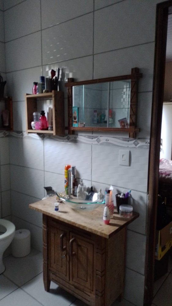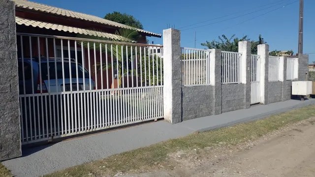 Casa com três dormitórios, sendo uma suíte e um banheiro social, sala, cozinha, varandas na frente e atrás piscina, portão eletrônico, muros bem altos com grades.