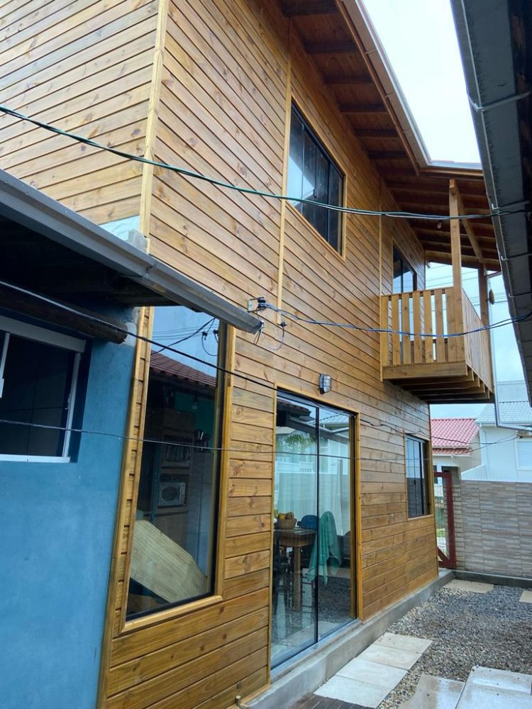 Casa nova construída à 6 meses, toda de madeira tratada pintado com osmocolor, dois pisos totalizando 48 m², um dormitório grande podendo se tornar dois com sacada, sala e cozinha integrada com porcelanato, um banheiro social