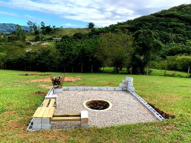 Fogo de chão e diversas árvores frutíferas, proporcionando um ambiente agradável e aconchegante.