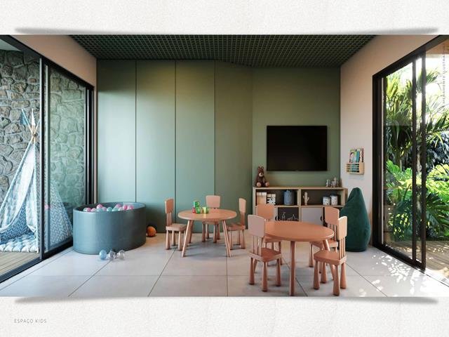 Estrutura de Lazer: Salão de festas com churrasqueira para suas celebrações, espaço kids e quatro playgrounds com 410,44 m² de diversão para as crianças, academia completa para manter a saúde em dia sem sair de casa, deck com vista para a área verde, proporcionando um espaço ideal para relaxar.